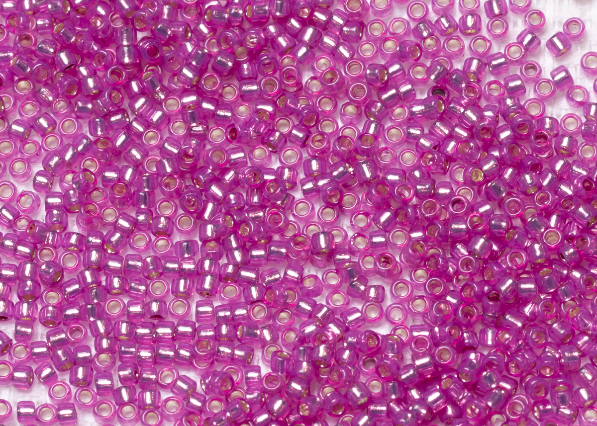 Бисер Япония круглый 15/0 10г 2107 молочный ярко-розовый, серебряная линия внутри
