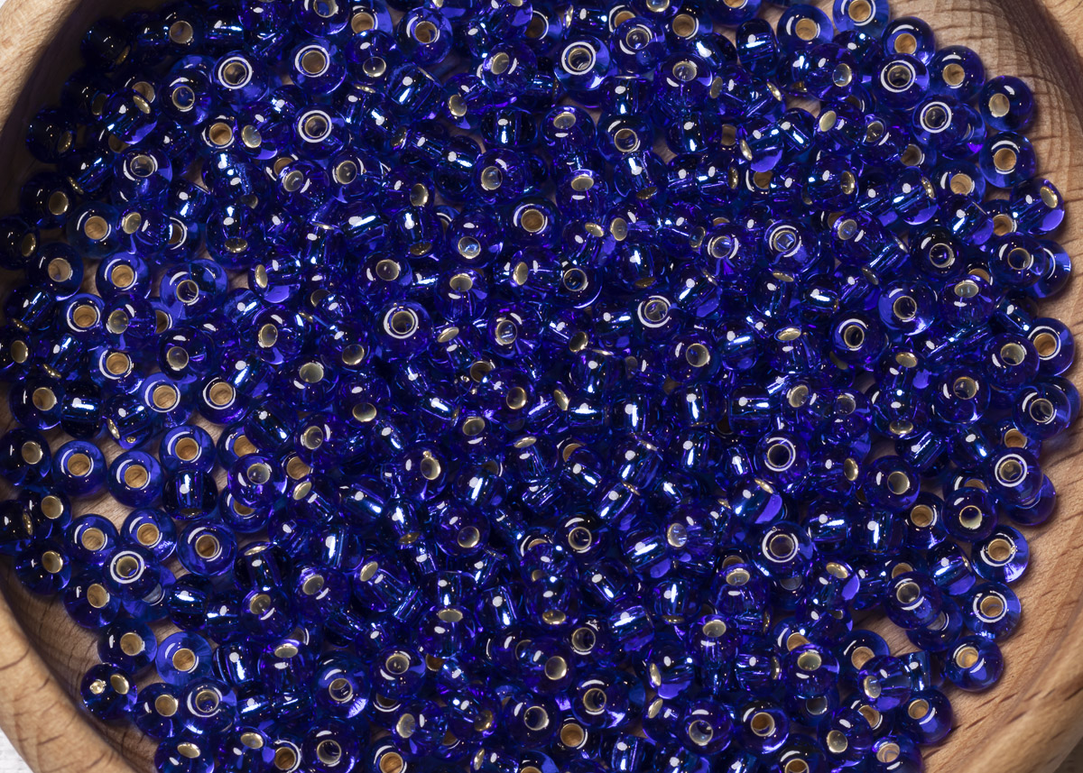 Бисер Чехия круглый 06/0 50 г 37080 прозрачный синий с серебряным прокрасом