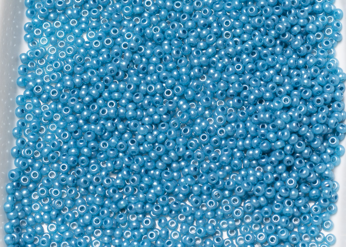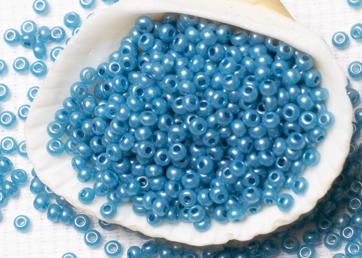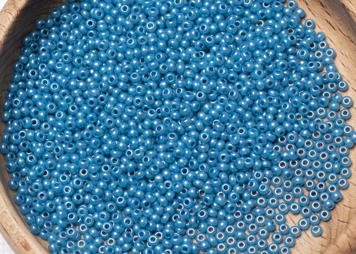 Бисер Чехия круглый 10/0 50г 17765 голубой с бирюзовым оттенком окрашенный алебастр