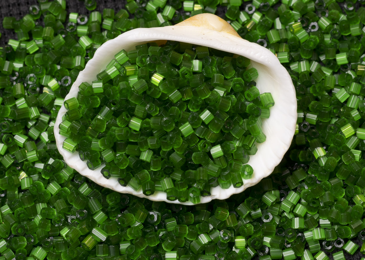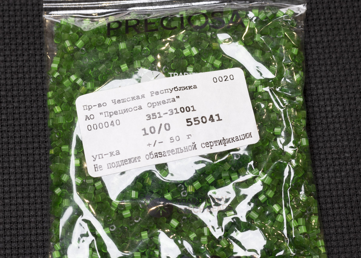 Бисер Чехия сатиновая рубка 10/0 50г 55041 зеленый насыщенный