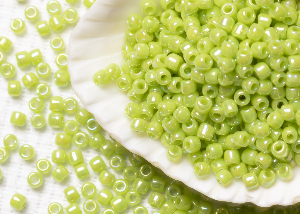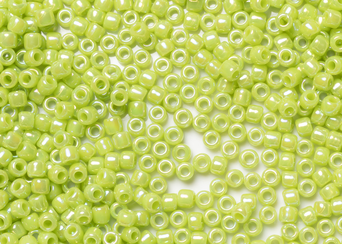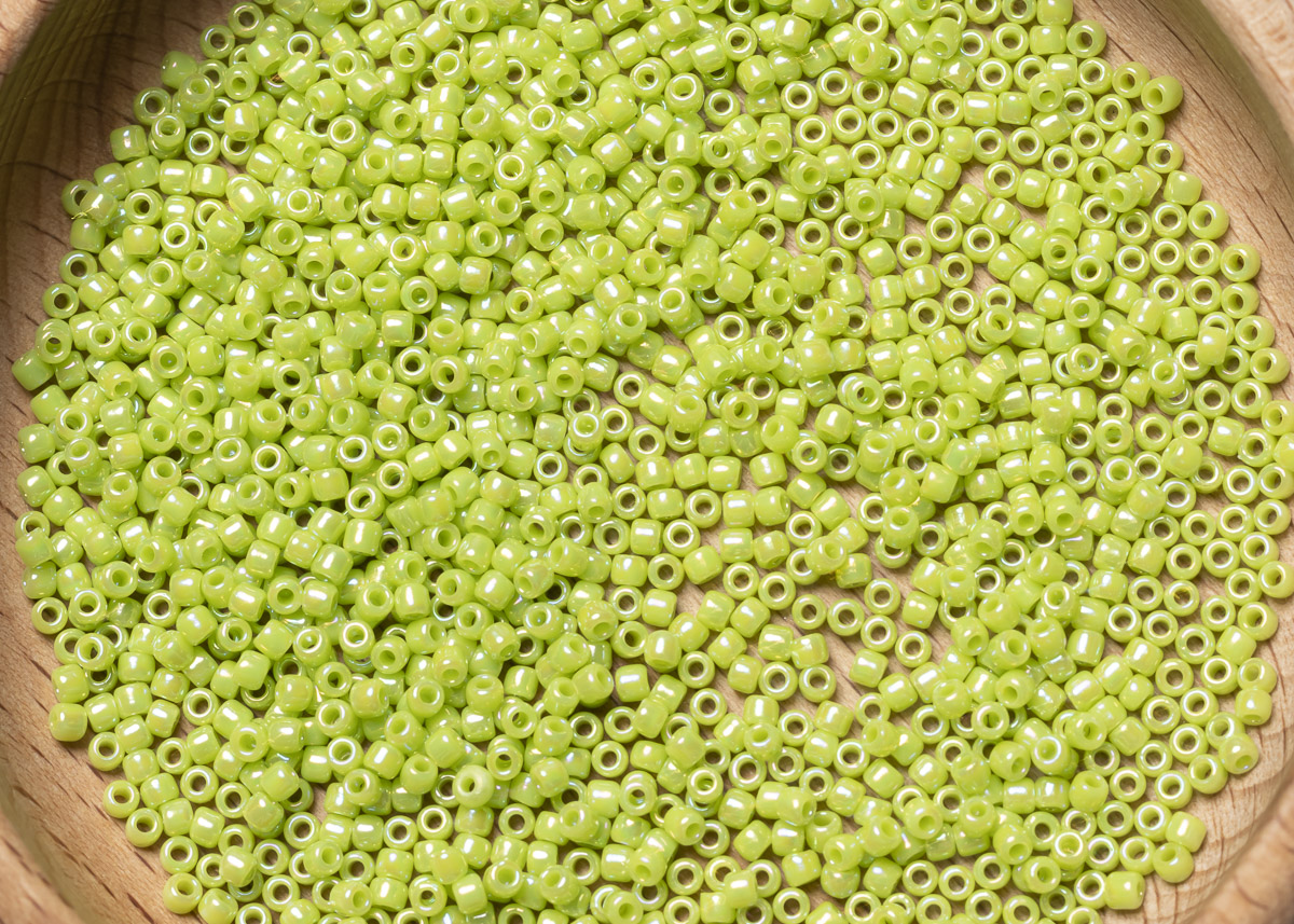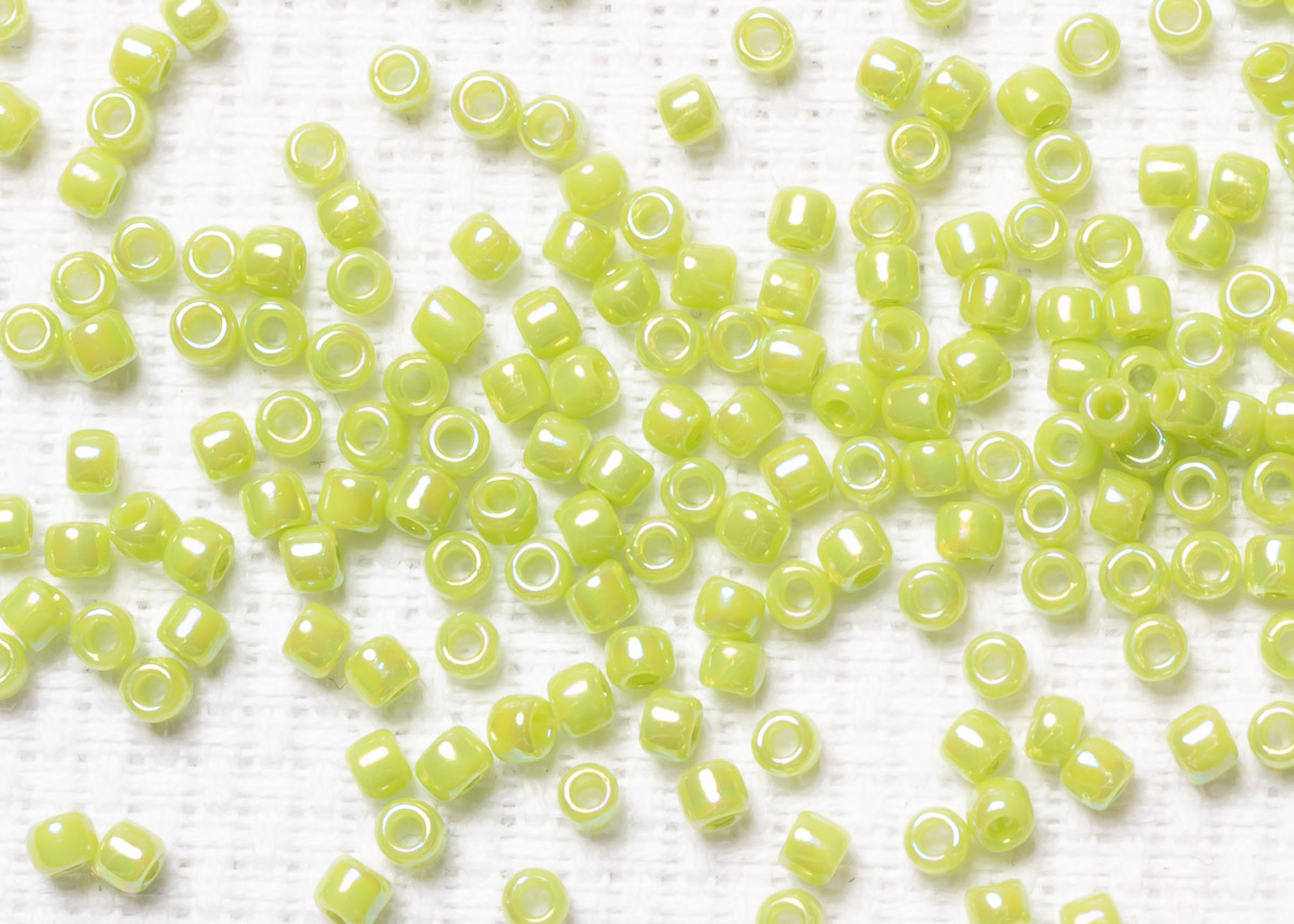 Бисер Япония круглый 11/0 10г 0404 зеленое яблоко, радужный непрозрачный